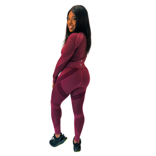 Burgundy Mesh Long-Sleeved Set